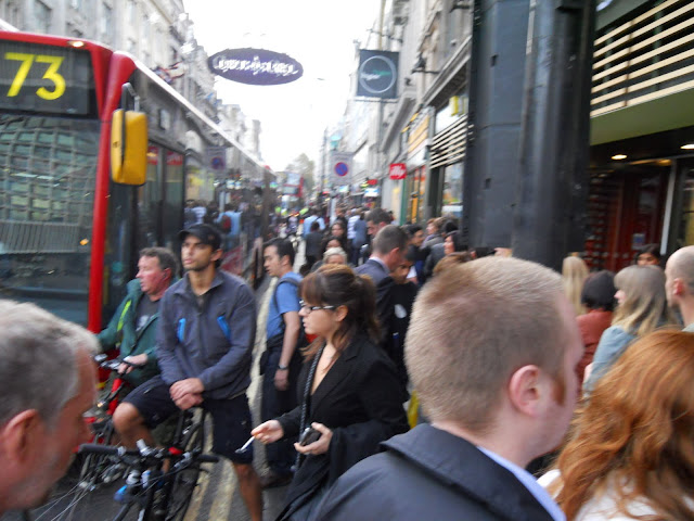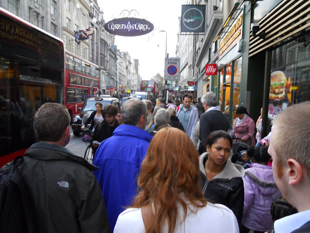 Absolutely. My first impression upon stepping up from the Tube station was how many thousands of people were packing the streets. I’m not inexperienced with crowds of people in public – I live not far from Wrigleyville in Chicago. Michigan Ave and the so-called Miracle Mile aren’t the least intimidating. This is exponentially different. The streets and sidewalks are narrow and irregular, poking around each other in curves and jots. Buses and cabs, mopeds and brave cyclists slalom around pedestrians who are jostling for purchase. The sidewalk has a tide to it, keep up with the rhythm or move off to the side.
